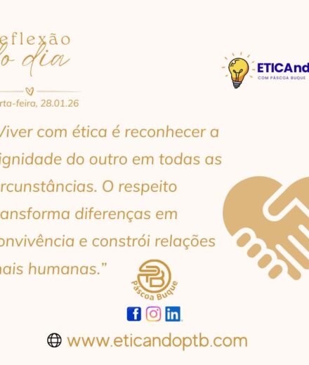 Uma iniciativa de reflexão crítica sobre ética aplicada à vida pública, profissional e pessoal. Mais do que teorizar, procura trazer perguntas e provocar a consciência de cada um, transformando inquietações em oportunidades de repensar decisões e práticas.